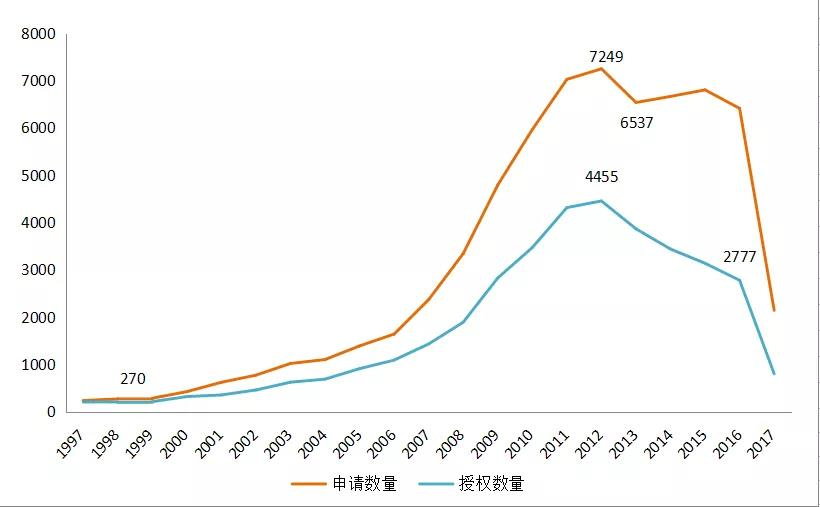 图5 风能产业不同申请人类型的申请比重 从图5可以看出,企业类型申请人在中国风能产业专利申请量中占据主体地位,企业类型申请人的专利申请量占中国风能产业专利申请总量的63.94%;个人类型申请人位居风能产业专利申请量第二名,占各类型申请人风能产业专利申请总量的17.41%;大专院校类型申请人位居风能产业专利申请量第三名,占各类型申请人风能产业专利申请总量的14.63%。科研单位位居申请人风能产业发明专利申请量第四名,占各类型申请人风能产业发明专利申请总量的3.57%。可见,风能产业的专利申请量主要集中在企业,企业在风能产业的发展中发挥了不可替代的作用,但企业与科研单位合作比例较低,而国内大学是一股不可忽视的研发力量,企业应当注重与国内大学开展合作,或者将国内大学较为领先的专利技术通过购买或转让的方式进行产业化。国内申请中个人申请比重大,反映该领域存在大量个体经营或小作坊式企业,技术门槛不高,相应的产业化程度也不高。 三、小结 (一)全球专利申请总量增速放缓,中国专利申请总量仍保持较高的速度 2012年后全球申请量和授权量的同步递减,专利年申请量保持在6500项左右,表明申请人能够申请的专利数量和具有技术突破点减少,风能技术在目前阶段已经进入了成熟期。中国的专利申请量保持增长趋势,在2016年达到了4933项的峰值,一方面是发展相对落后,目前处于增长期,另一方面也与国家政策方针密切相关。 (二)与国外企业相比,国内企业仍处于弱势 风能领域,以通用电气公司、维斯塔斯、西门子公司为首,上述三大企业的申请量均在2500项以上,以绝对的优势领先于其他申请人,占据风能领域的领先位置。国内企业中,国家电网公司、国电联合、金风科技和广东明阳风电较为领先,但是国内企业的发明授权占总授权量的比例偏低,与国外企业相距较大。 (三)国内专利申请主要集中北京、江苏和广东等发达地区 北京以申请量6127项居于首位,江苏以申请量5297项位列第二,广东、上海、浙江分别以申请量2795项、2391项和2276项位列第三到第五,上述五个省市占整个国内申请量的46.72%。 (四)在国内专利申请人类型中,高校和研究所机构所占比例偏低 企业类型申请人的专利申请量占中国风能产业专利申请总量的63.94%,个人类型占17.41%,大专院校类型占14.63%,科研单位占3.57%。国内申请中个人申请比重大,院校和研究所机构所占比例偏低,反映该领域存在大量个体经营或小作坊式企业,技术门槛不高,相应的产业化程度也不高。 来源:《广东知识产权》总第51期 作者简介: 刘聪,工学学士,现任广州威尼斯app官网有限公司专利代理人。 冯剑明,工学学士,2016年度四星专利代理人,现任广州威尼斯app官网有限公司专利代理人。 梁嘉琦,工学学士,现任广州威尼斯app官网有限公司专利代理人。 |